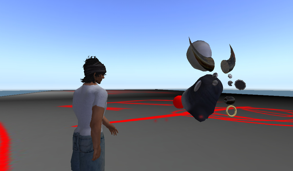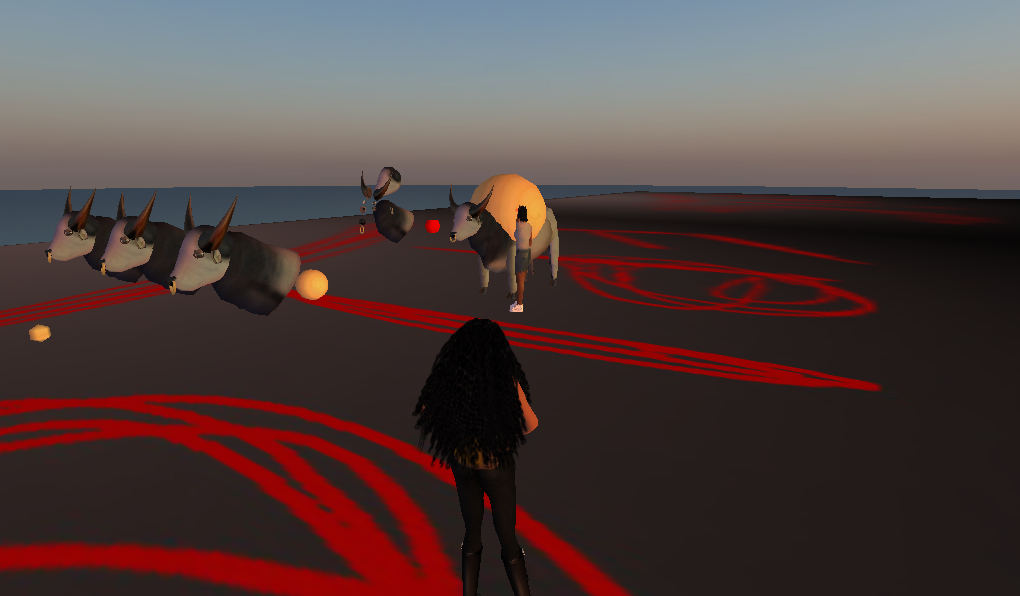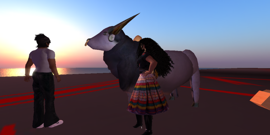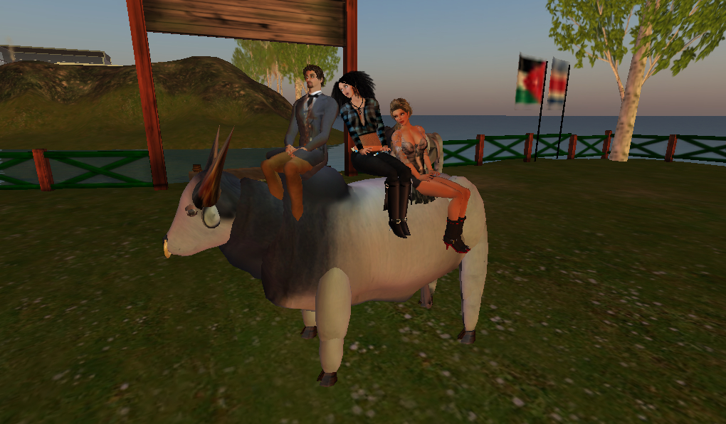 Well Laan made a beauty in record time, but it had a problem, it was stationary and I was hoping it could move and look more alive. So I remembered a scripter I serendipitously found myself riding a floating bed in La Reve with one night, all very innocently, and I contacted him and asked if he would be interested in helping me out. I had a beautiful sculpted bull, but not animated and I wanted to see him alive and hear him bellowing.