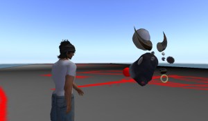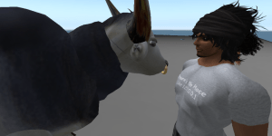 Finally after many days and even weeks of trial and error, Epic tp’d me up to his sandbox and while we were just exchanging casual greetings, I looked over at Vector and…”He raised his head and cocked his eye” I started to cry. I guess if you remember I am a sensitive poet, my reaction was not so unexpected, but I did..I saw an idea just an idea, come into shape and then come alive before my eyes. It was such a proud moment I felt like the mother of a bull who had two proud fathers and I snapped a picture quickly to never forget this rush of exhilaration flowing in that second.