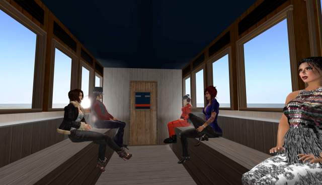 The illustrious list of well-wishers included many gifted builders, scripters, and riders of the rails, all with one thing most certainly in common, the love of trains. After everyone yelled out their sincere congratulations to the creators, Hilto and Myuki, Myuki rezzed the first train and called out to the platform full of perspective passengers “All Aboard” Everyone started sitting as they could, some landing on the roof and it was not possible to seat everyone in the one small brightly painted car… but we sure tried.