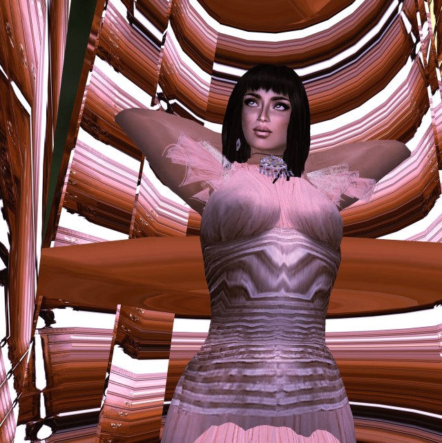 “Why are you here?” She asks me in thoughts. Her voice is like the flute in the mountains and it sings like a fine reed instrument. Her tone plays in my head more than it speaks to me, but it is a very real dialogue, and I am thrilled and amazed that I have communicated once again, with a life form from another separate world. She glows pink, like my dress and the rest of the room is bronzed, even I who have seen such incredible colors am overwhelmed when I look at her, hear her thoughts and feel a sensation all over my body. I tingle in this room, of rose pastels, and the rich brown of the wood and bronze. The music that comes and goes, waltzes, flutes, symphonies and mystery themes, oh..how can all this be for only me?