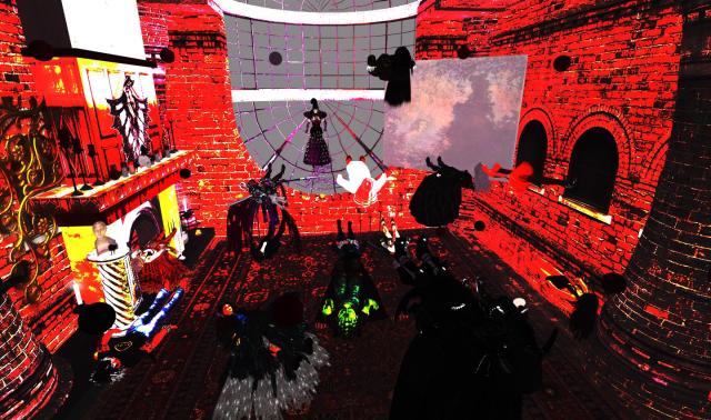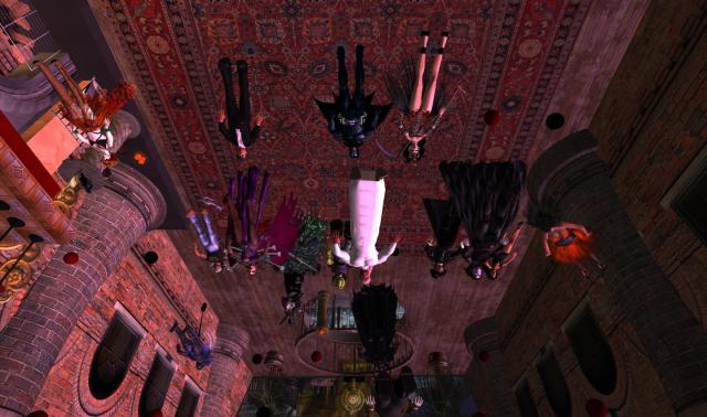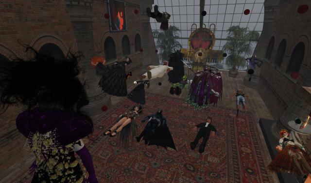 I tried to be as welcoming as possible when the guests who had come to Steampunk Hall began arriving, but my oddly bent elbows and my rather pained and stiff expression I blame entirely on having just woken up from the dead. Still, I was looking forward to putting those mortals under the spell of poetry, for this was a spell I had been practicing casting, for a few years now. I found the growing group, to be amazingly sensitive, so much so, that without me even beginning to recite, or the music  streaming, they began floating horizontally in front of me…. such a delight to see them stretched out helplessly, for one undead as myself. Our pleasures are very different than the mortals.