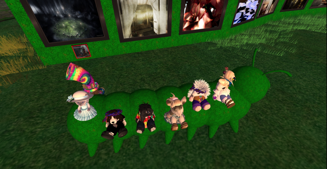As the notecard says:”We also have a Hedgiepillar ride for you to ride around all the beautiful 2D art in the Raglan Shire sim. *They are great to ride with friends 🙂 Just click on the stand and one will rez or jump on one for a ride.“