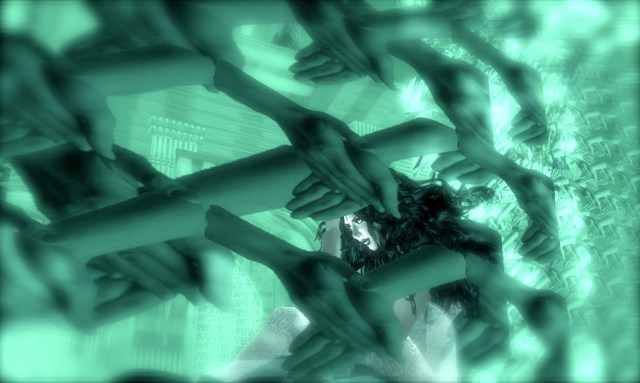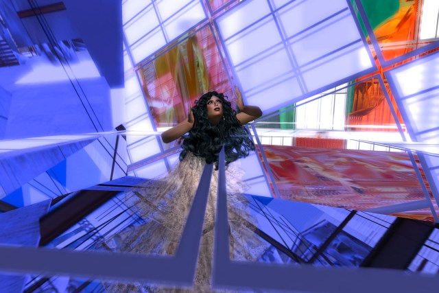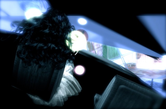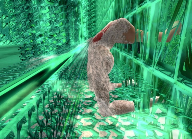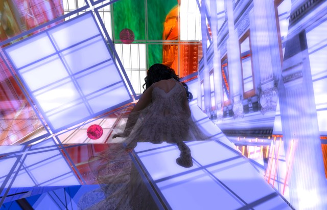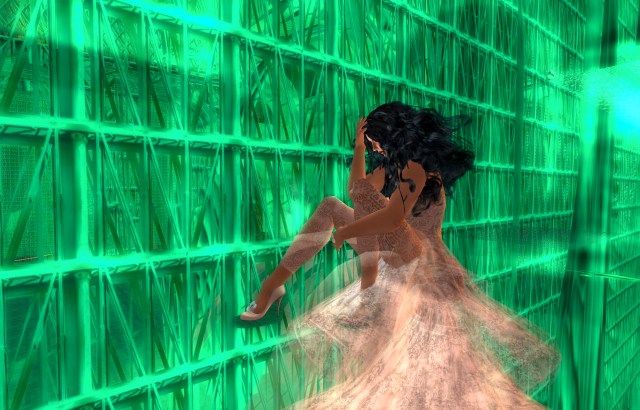 Languid and liquid is how I feel, when I am carried gently and smoothly from the heights of the barrier, through transparent floors that easily make way for my descent. I try to count them, and lose count, but I feel I am going very deep inside this structure of design, a new form of architecture for me, so foreign yet so beautiful in its strange angles, odd textures, surprising walls , sparse rooms with things that appear and disappear as I pass through them. It seems more logical sounding as I write it down, but at the moment I am living on this side, it is always on the edge of being too overwhelming. There seems to be no one to greet me, orient me, observe me, or tease me, so I lay here, still waiting to see what will happen next. Maybe only a few minutes pass, before I feel a direct summons to get up and to sit on the only piece of furniture in the entire long corridor, for this is not a room, but a passageway, where I have been put down.