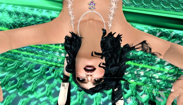 There is a humming and the sound of dry wind,while I rotate slowly around on my stiletto balanced axis, both feet like a dancers, pressed together tightly, my arms are now pulled and maintained behind me. The feeling is not as unpleasant as it may seem from my description but rather, I feel I am being asked to surrender my will to their order,and begin to be accepted in it. I find grace in my pose and a feeling again of warmth and well-being spreads over me. If I look upon this same position,from a point of view of fear, I could think I am being handcuffed and restricted, but no, it is like a game, and they all seem to take enjoyment out of it, and in return give me these pleasant sensations, that radiate from my limbs to my heart, and then back out my fingertips, that are in a clasp behind me.