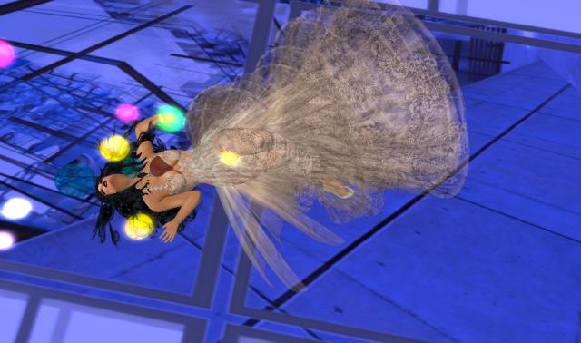 My arms shoot out ahead of me instinctively, and feeling separated from the sphere, causes me a moment of panic, which I talk down, as I see I am coming to a curtain, a thin gauze that divides this side from another, or so I am guessing. It is like a border crossing, and only I have my papers in order to make it across…or this I hope. The curtain parts for me, as I go slowly gliding into it, through it, but as soon as all of me reaches the other side, I am abruptly placed on my feet, and my solo flight is halted rather jarringly.